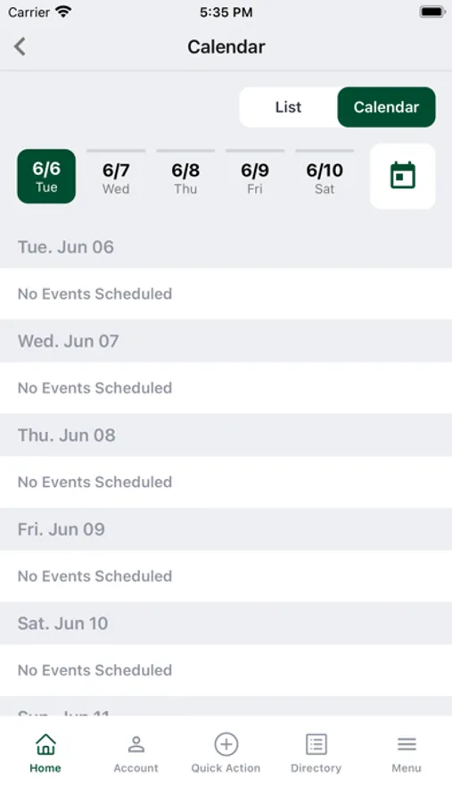 - View calendar of events