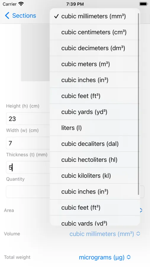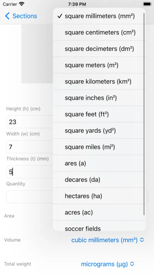 - Flexible Units of Measurement: You can now choose your preferred units for length, area, volume, and weight. We support a wide array of units including, but not limited to, millimeters, inches, feet, yards, square inches, square feet, cubic millimeters, cubic feet, and various weight units from grams to tons.
