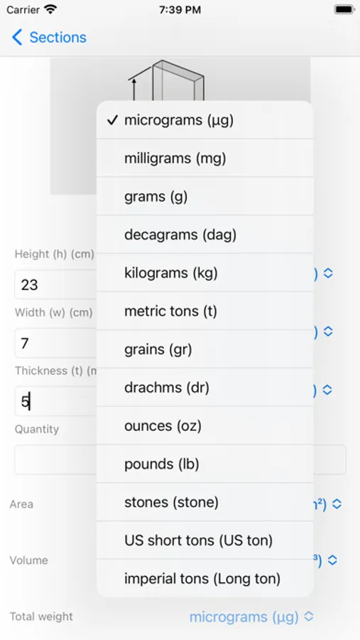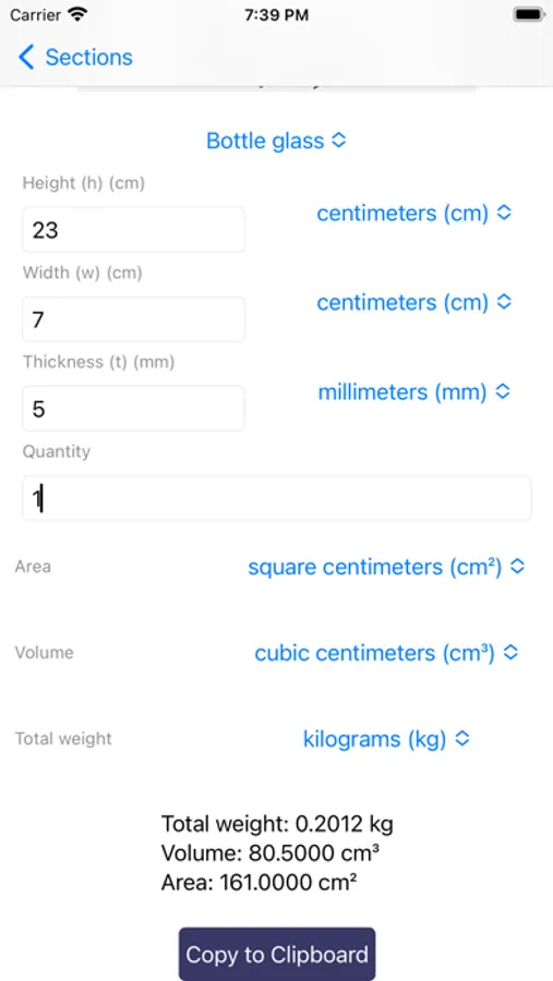 - Additional Metrics: Besides weight, the app also provides volume and surface area calculations.
