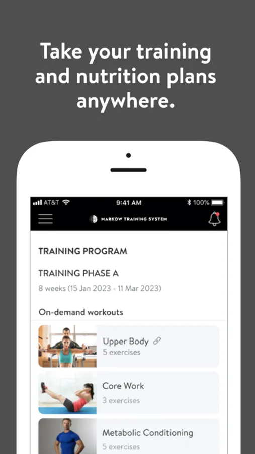 With the Markow Training Systems App, you will have access to workout programs designed specifically to help you reach your fitness and health goals! You can follow & track your workouts, your nutrition, your lifestyle habits, measurements and results–all with the help of your coach.