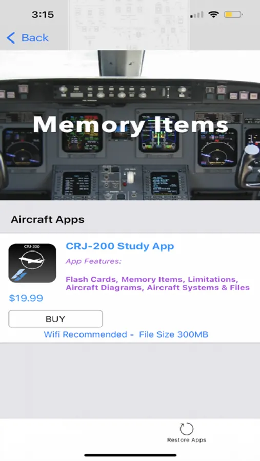 STEP 3: Tap the Buy button under the aircraft you wish to purchase. Your account will be charged a one time price for the material and content. The price is listed on each Aircraft App and the price will be different based on the content in each app.