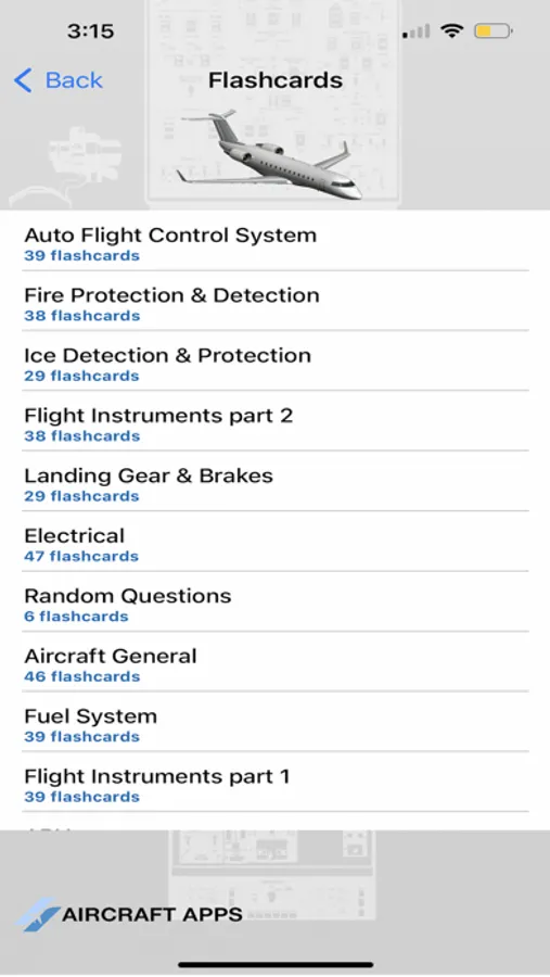 •Choose any aircraft system from a drop down menu and easily study technical questions about the airplane.