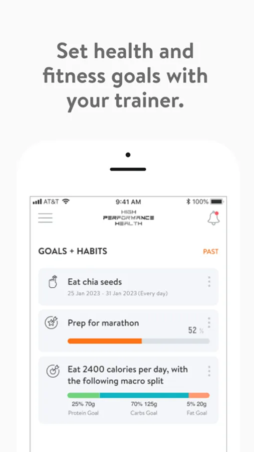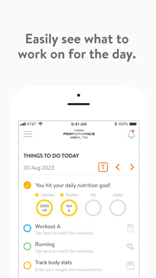With the High Performance Health App, you will have access to workout programs designed specifically to help you reach your fitness and health goals! You can follow & track your workouts, your nutrition, your lifestyle habits, measurements and results–all with the help of your coach.