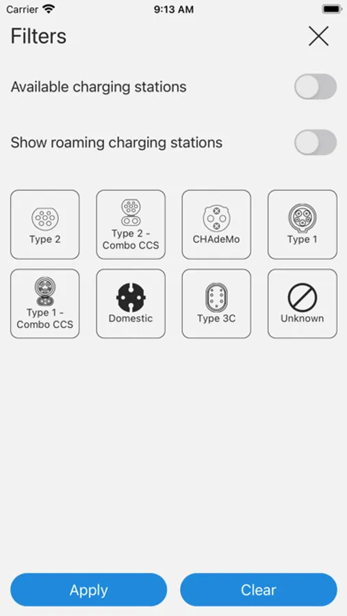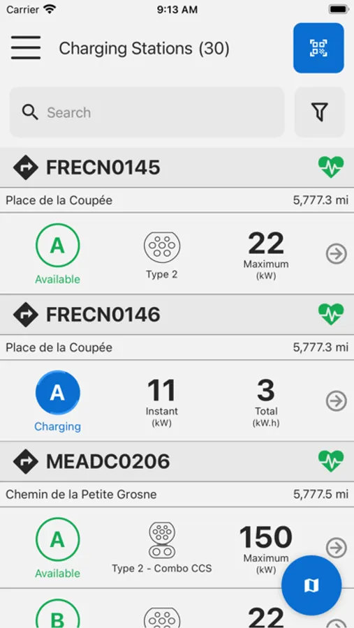 - Find charging stations through map or list