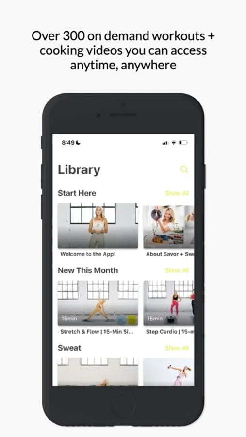 -Over 300 on demand workouts ranging from dance cardio, athletic barre, hiit mat, step cardio and stretch + flow classes.