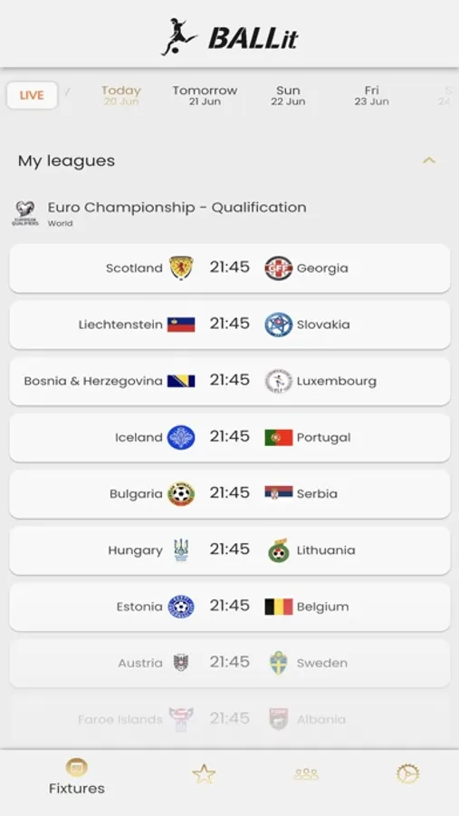 Create or join tournaments with your friends and take on the challenge of predicting soccer match results. Compete in a friendly atmosphere while enjoying the spirit of soccer.