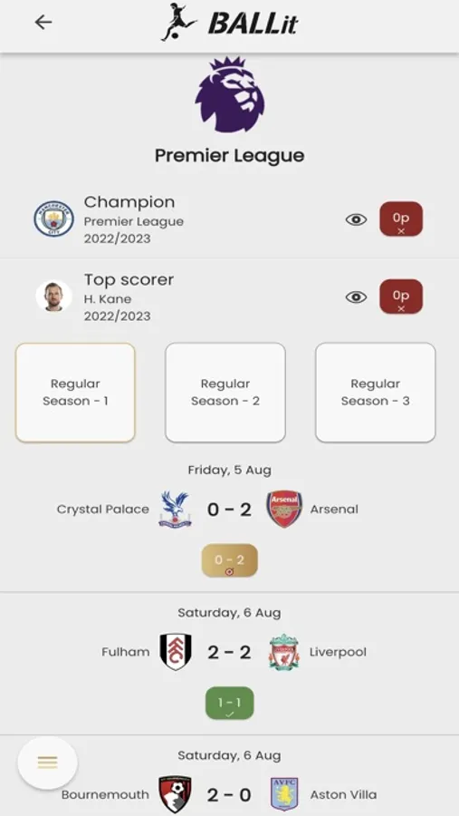 Join our app, where the passion for soccer meets friendly competition! Select your favorite teams and leagues and stay updated with live match results. compete in exciting tournaments with your friends as you predict soccer league outcomes, set scores for each game, and make your picks for the champion and top scorer. It's time to showcase your soccer knowledge and tactical instincts to claim victory!