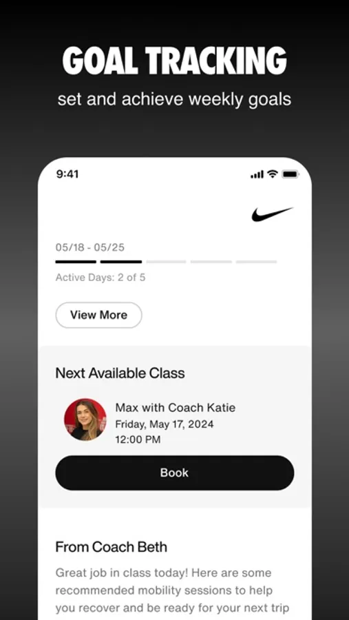 • Weekly goal setting and tracking toward your goals across all of your Nike activities.