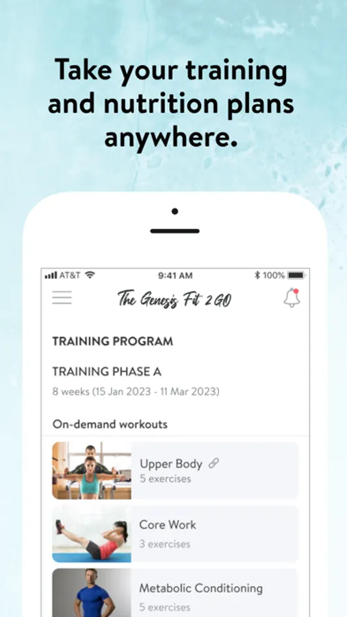 With the The Genesis Fit 2 Go, you will have access to workout programs designed specifically to help you reach your fitness and health goals! You can follow & track your workouts, your nutrition, your lifestyle habits, measurements and results–all with the help of your coach.
