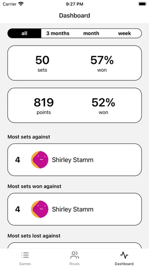 Win Ratio Against Rivals: Analyze win ratios against your training partners.