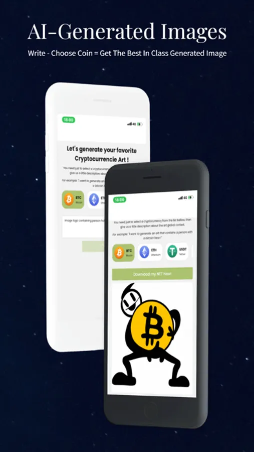 - AI-Generated Images: Unleash your creativity with our cutting-edge AI-powered image generation feature. Select a coin and provide a description or content, and watch as our AI creates stunning and unique visuals based on your input. Share these captivating images with others, enhancing your ability to communicate and engage in the crypto community.