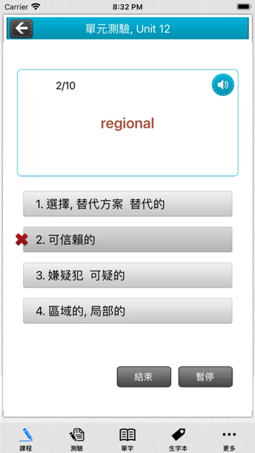* 可自建使用者單字,並且作記憶和測驗練習。