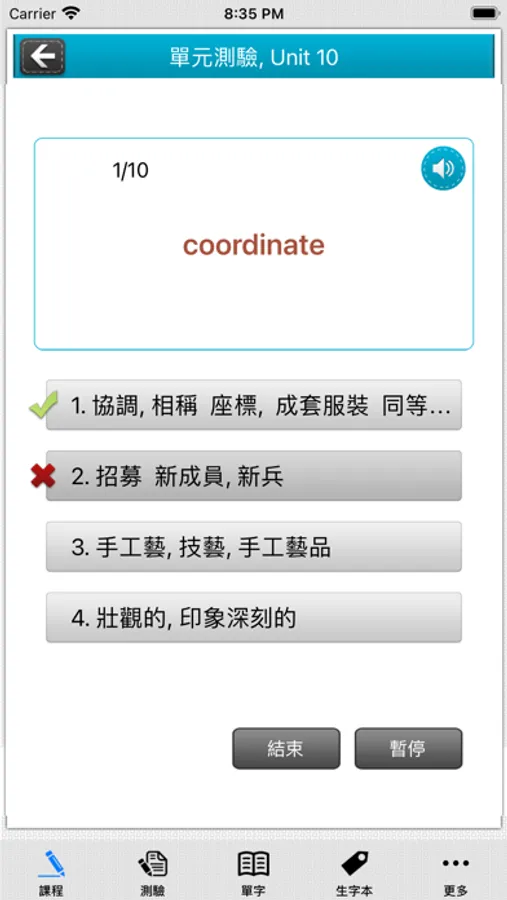 * 可自建使用者單字,並且作記憶和測驗練習。