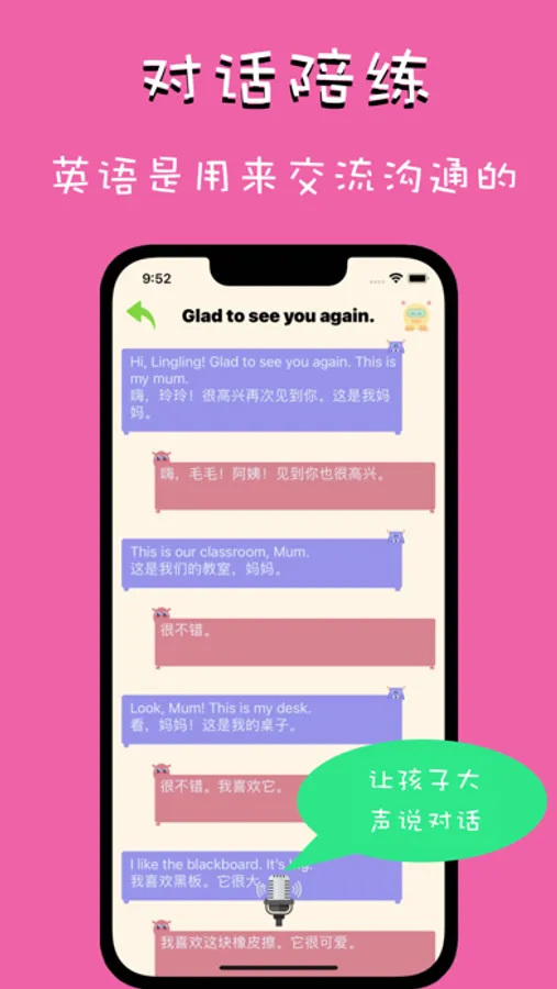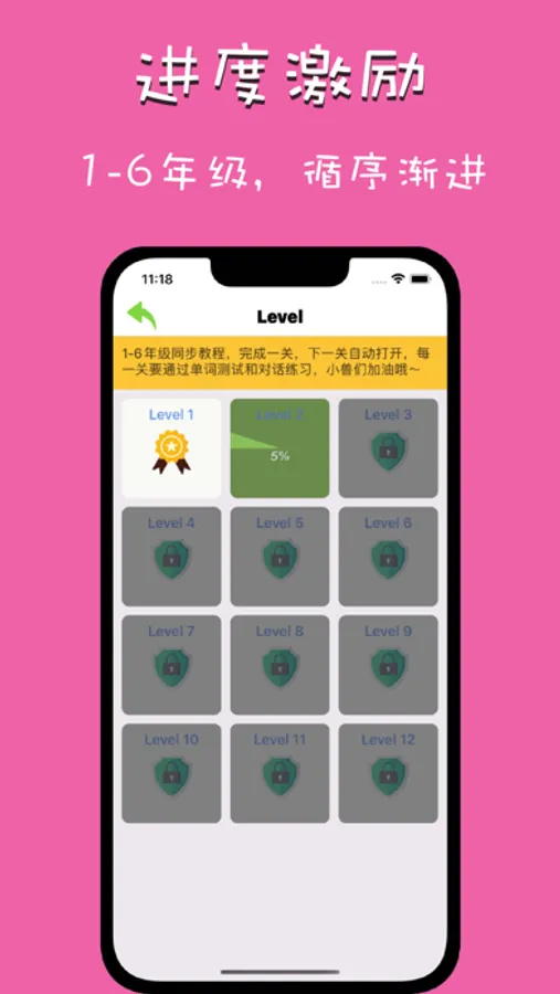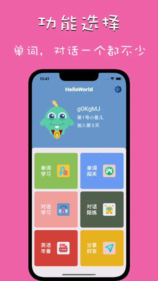 孩子的天性是玩,而语言以沟通为目的,HelloWorld着重让孩子说出来,发出声,以游戏通关的方式培养孩子兴趣,引导孩子学英语,说英语,讲英语。