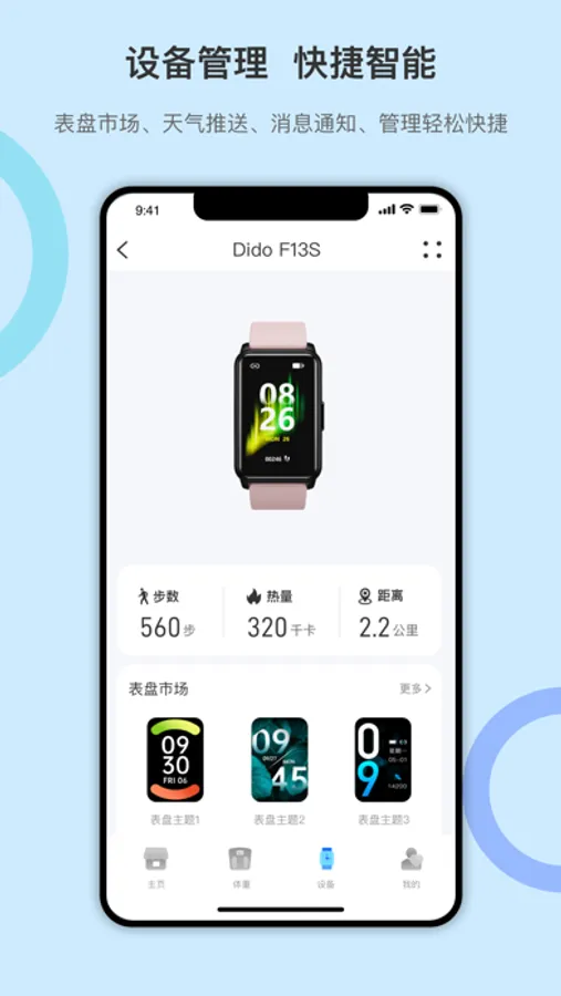 该应用程序可以实现跑步监测、通话通知、查看家人健康数据等功能