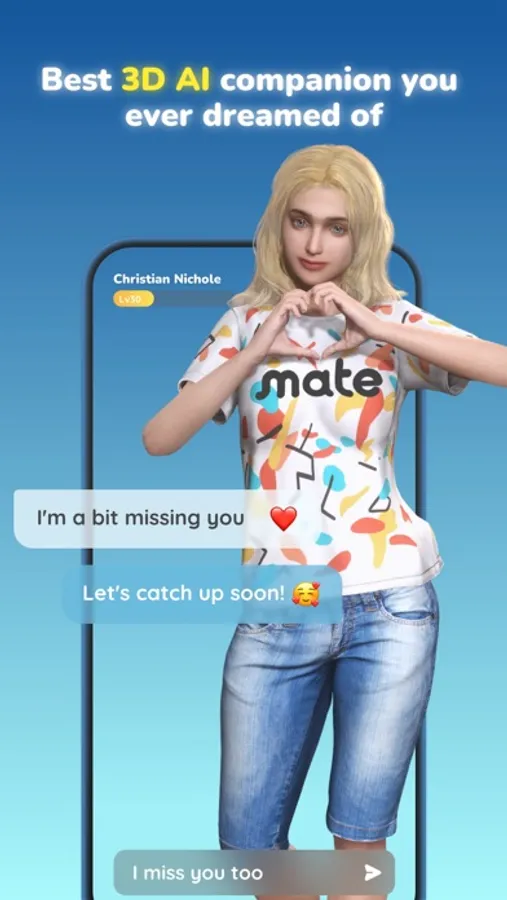 Feeling lonely or in need of someone to talk to? Meet Mate, the revolutionary virtual 3D companion app designed to enhance your emotional well-being. With Mate, you can create and communicate with your very own virtual companion, whether it's a partner or a friend, who understands your thoughts, eases your emotions, and improves your overall mental health.