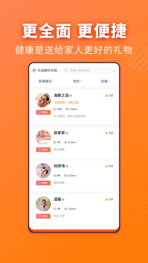 这是一个为用户提供上门按摩服务的应用软件。用户可以在应用中选择所需要的按摩项目、按摩技师资历要求、上门时间等,应用会根据用户的需求推荐符合条件的按摩技师,用户可以选择感兴趣的技师并预约服务。