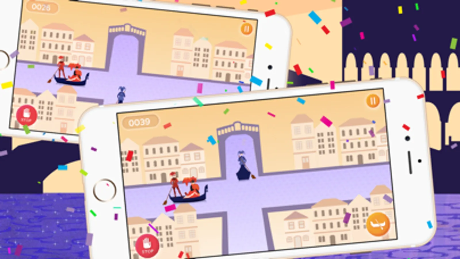 Mais ne prenez pas trop d'assurance : Il y a encore d'autres gondoliers dont vous devez vous occuper. Leur position et leur vitesse sont aléatoires à chaque fois, vous ne savez donc jamais à quoi vous attendre. Si vous percutez l'un d'entre eux, c'est la fin de la partie.