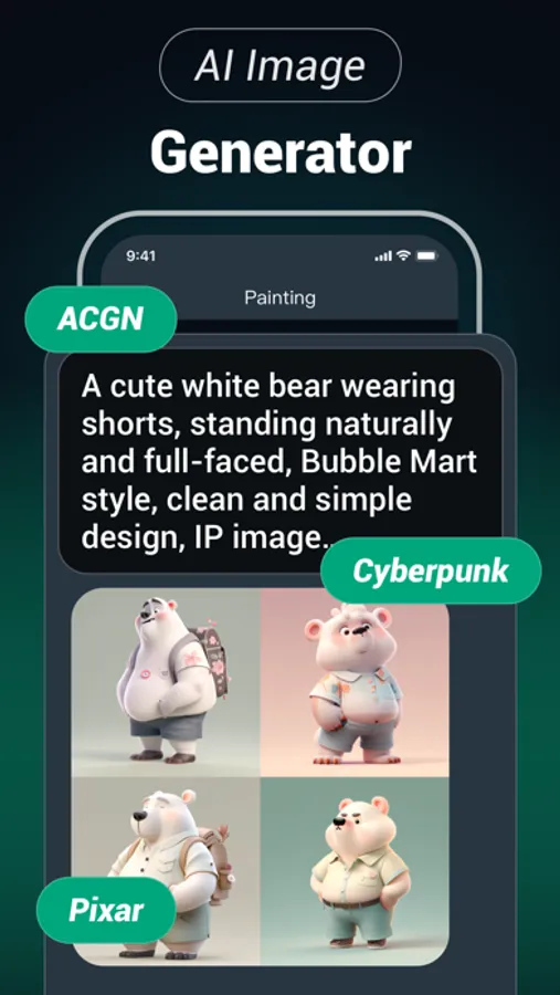 Simply describe your ideas and create various styles of images, supporting various artistic styles such as illustration, oil painting, realism, comics, abstraction, etc;
