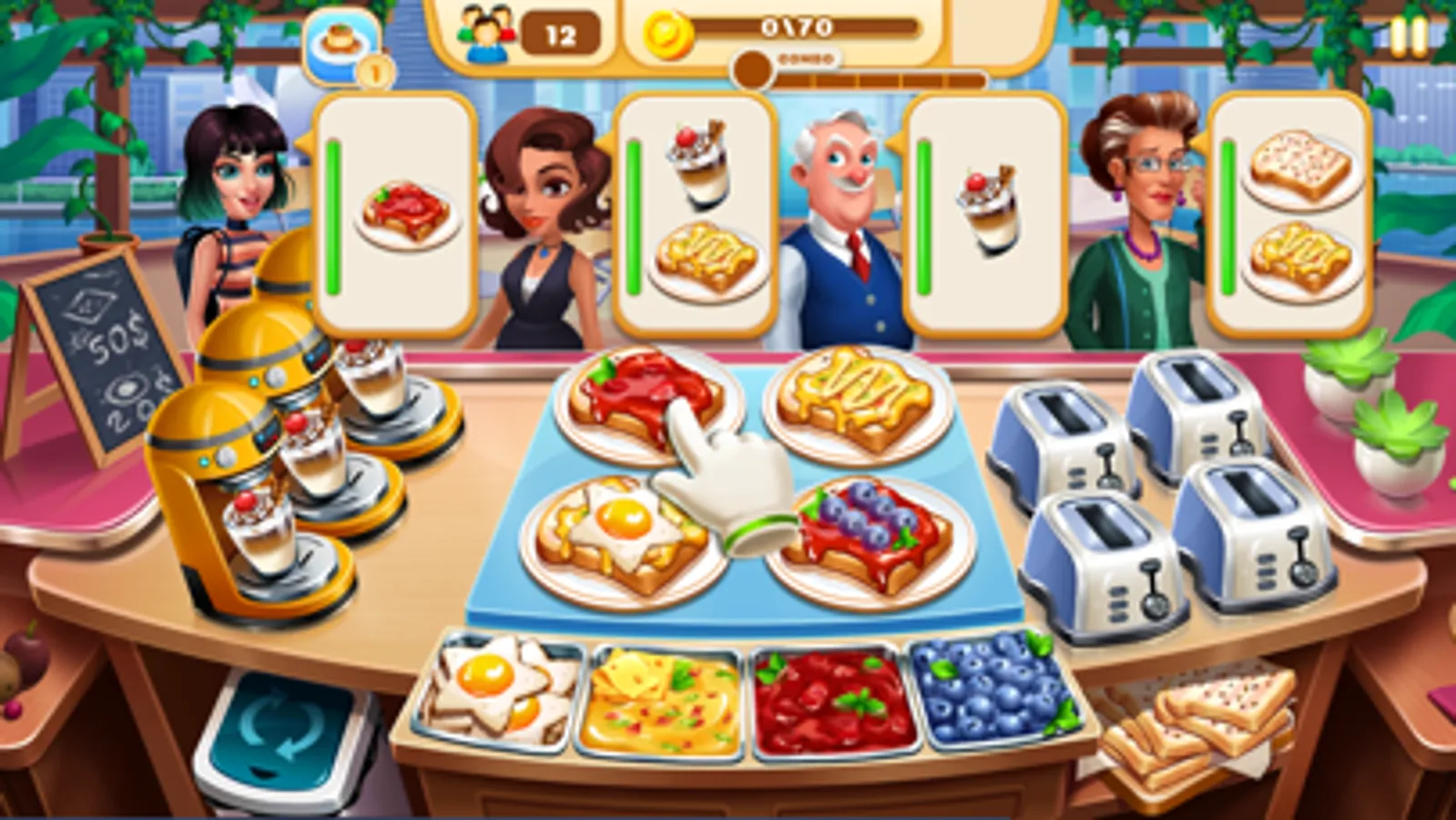 Tap to cook, add toppings for any food such as hotdogs, hamburgers, pizzas, coffee, tea, ramen noodle, sushi, croissants,etc., and complete the mission.