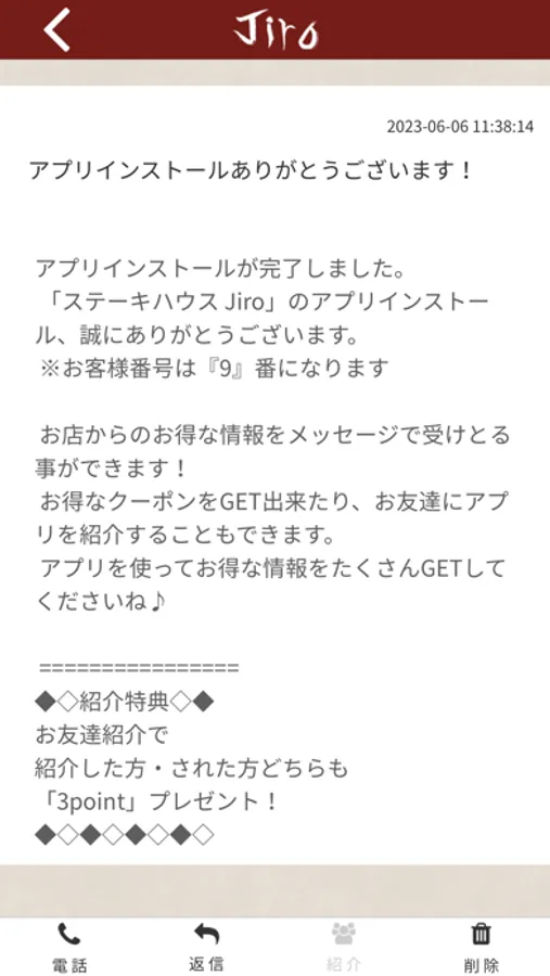 ステーキJiroのアプリをSNSを通じてお友達に紹介する事ができます。