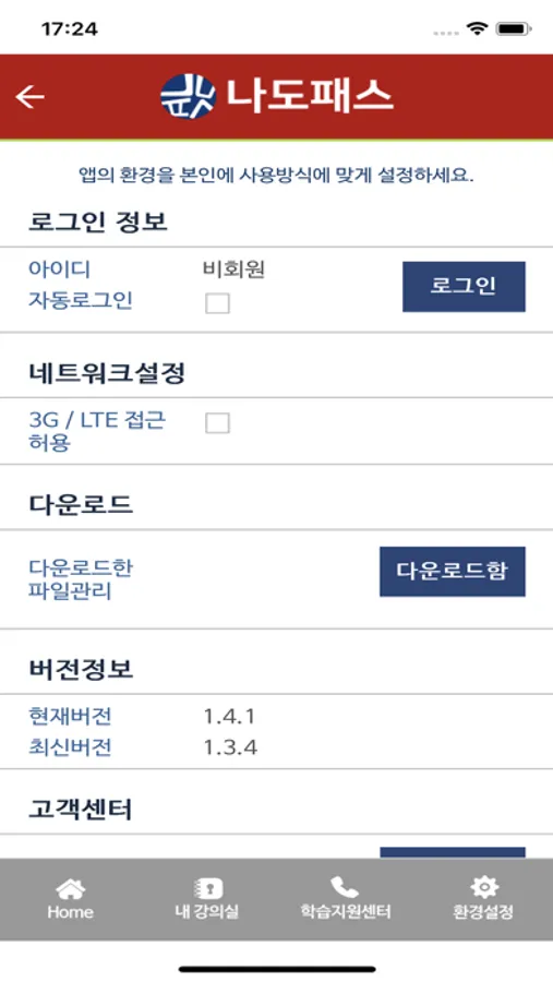 * 다운로드(로그인을 위해 네트워크에 연결이 되어 있어야 합니다.)기능으로 와이파이가 불가능한 지역에서