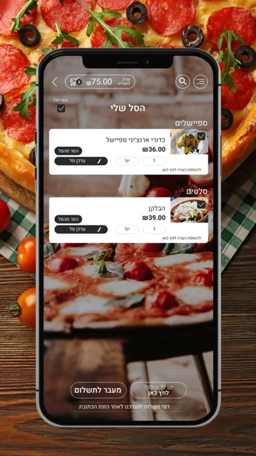 ניתן לבצע הזמנות ומשלוחים ישירות מהאפליקציה Pizzamapasta.