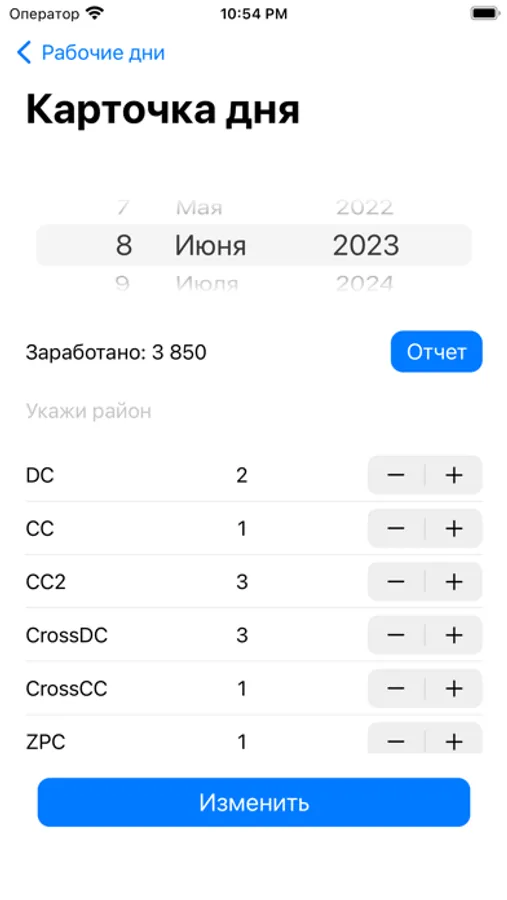 Приложение создано для учета выданных продуктов специалистами выездного канала.