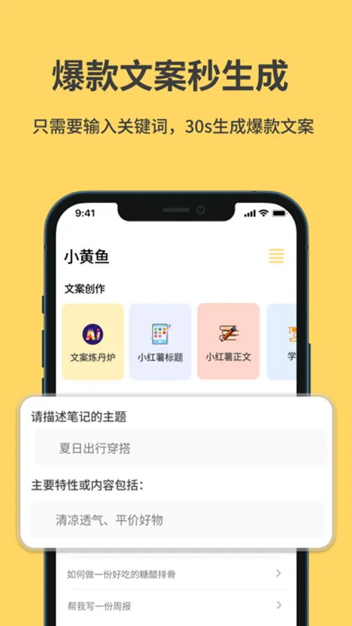 1、爆款文案秒生成:只需输入关键词,30s生成爆款文案;