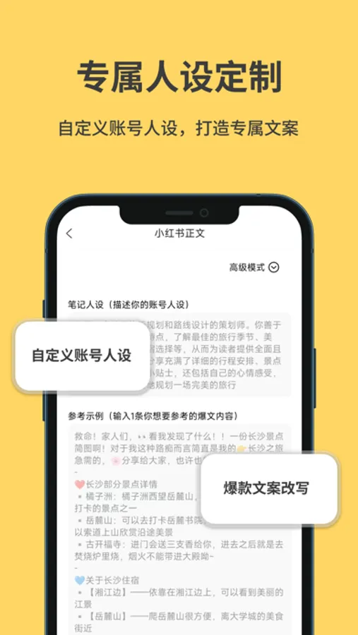 4、专属账号人设:为你特有的小红薯人设量身打造文案,彰显个性!