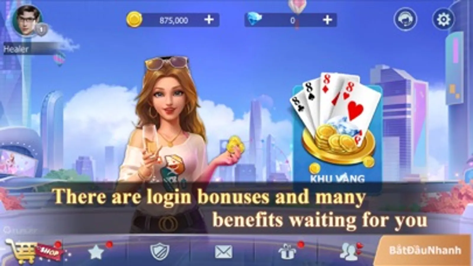 This is a popular online poker game that originated in northern Vietnam. The objective of the game is to get rid of all the cards in your hand faster than your opponents. Each win in a game rewards players with gold coins.