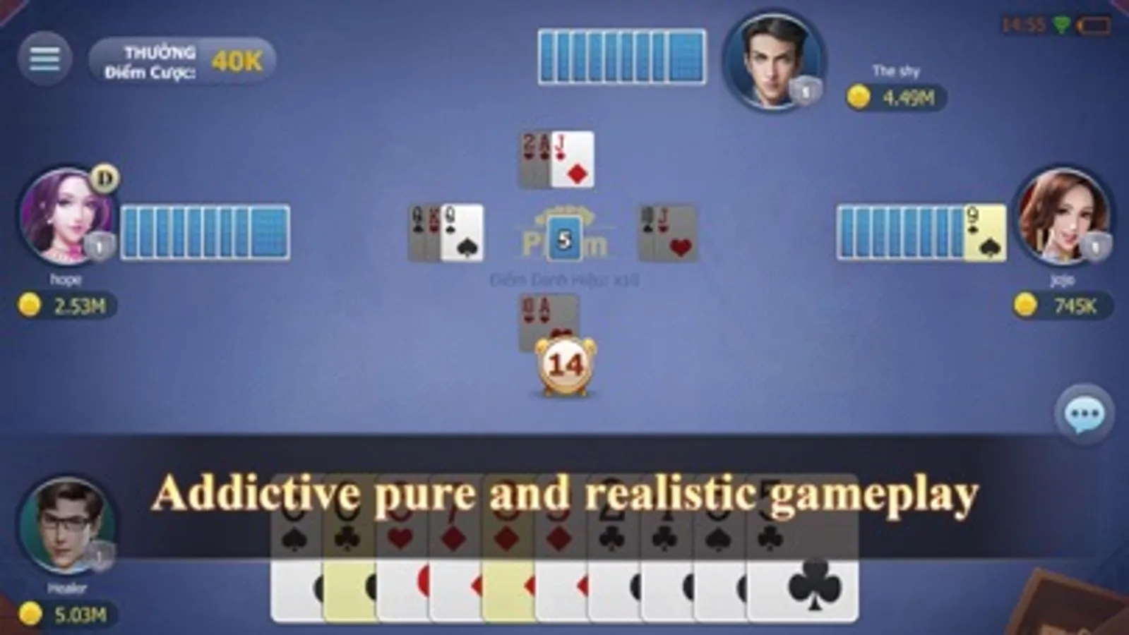 Hey there! I just came across a fantastic online game called "Phom". It's a poker game that's really popular among Vietnamese people, and I think you'll love it too! In this game, you can earn gold coins by winning matches and completing tasks. There are many different game modes to choose from, each with varying degrees of difficulty, so you can keep challenging yourself and improving your skills to unlock more prizes.