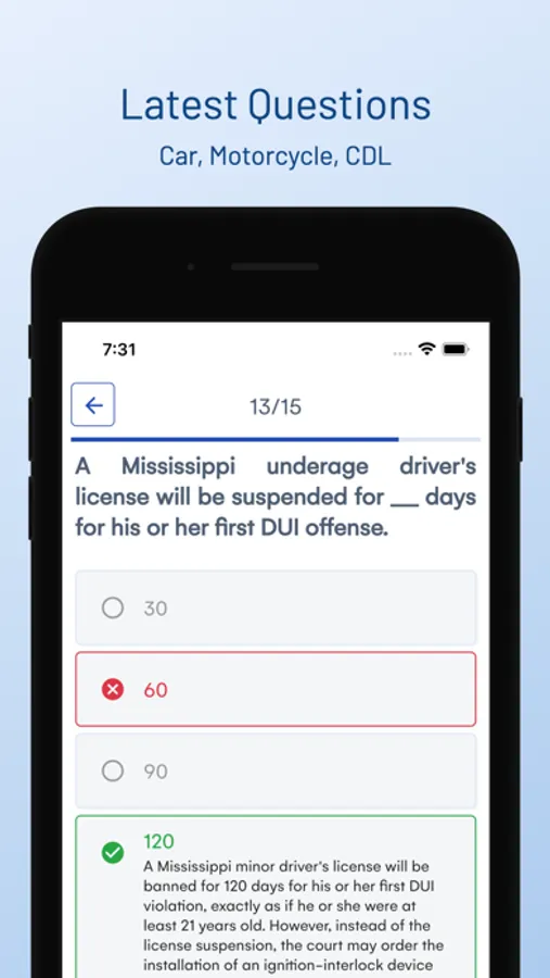 Our Mississippi MS Driver Test Permit app , is easy to use and accessible from anywhere, on any device. You can practice on your phone, tablet, at home or on the go. And with our free and unlimited tests, you can practice as many times as you need to feel comfortable and confident for the real DMV Written test .
