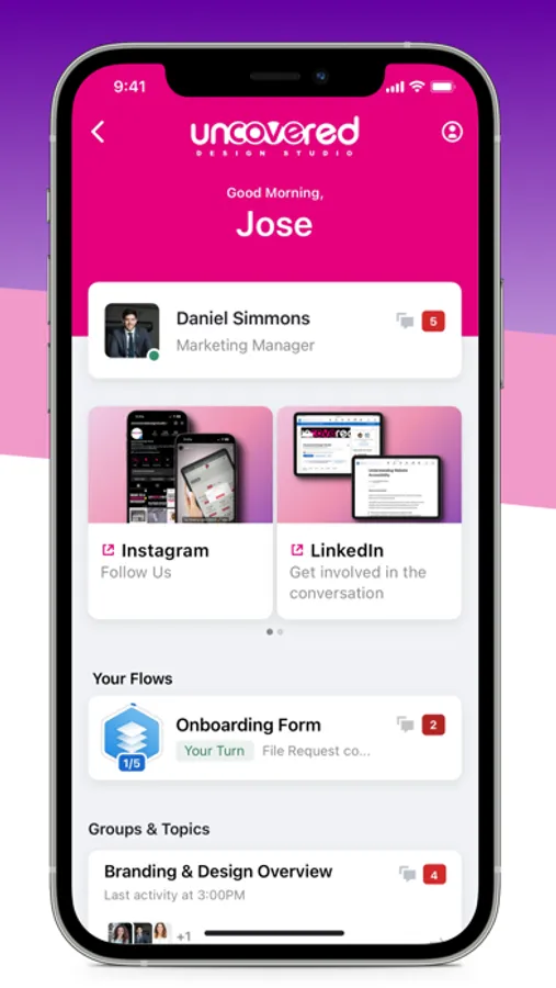 Our passion for design is matched by our commitment to helping you achieve your business objectives. The Uncovered App was launched to centralize communications and streamline design projects for a seamless experience at your fingertips. We take pride in delivering innovative, creative solutions that elevate brands and drive success. Our app supports capabilities such as secure messaging, document sharing, video conferencing, file annotation, private workspaces, and more. Use the Uncovered App to receive updates on your design projects, review to-do items, effectively collaborate with our team, and access your information.