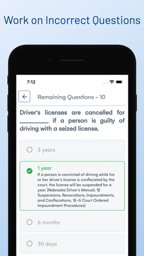 Our Nebraska NE Driver Test Permit app , is easy to use and accessible from anywhere, on any device. You can practice on your phone, tablet, at home or on the go. And with our free and unlimited tests, you can practice as many times as you need to feel comfortable and confident for the real DMV Written test .