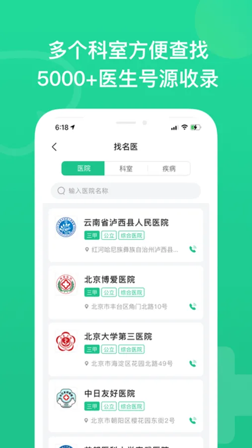 【找医院】全国医院查找,知名医院就近选择,家门口的好医生,轻松找到本地优质医生,随时极速挂号预约,线下及时就医。