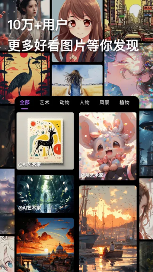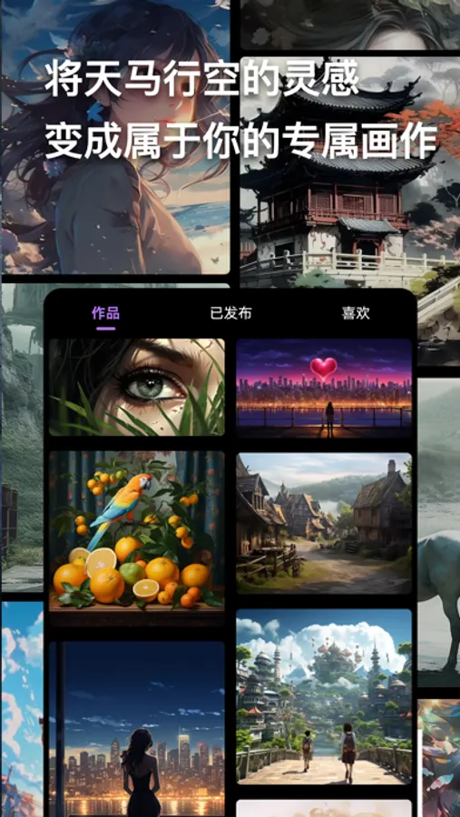 简单描述一下你的想法:“孤独的画家”、“山里的河流与小船”、“由宫崎骏绘画的天空之城”或任何你能想像到的,点击 “开始创作” 并等待十几秒钟,就能看到你自己创作的艺术作品。Monica App使用前沿的AI技术来生成AI绘画作品。部署了多台高性能机器并持续优化算法,在提高艺术作品质量的同时,缩短了等待时间。
