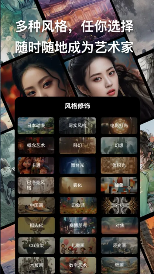 *AI绘画品类全面:Monica App自训练大量特色的AI模型,各类二次元风格,MJ模型风格,历史著名画家,现代数字艺术,各种小众画风,都能在Monica App找到。