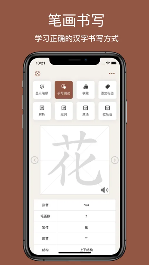 3. Provides stroke order to quickly learn character writing techniques.