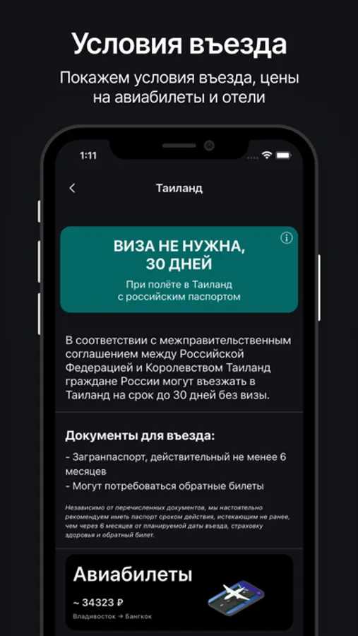 Приложение позволяет увидеть страны, в которые не нужна виза, узнать приблизительную стоимость авиабилетов или гостиниц, а также просмотреть список документов, необходимых для пересечения границы страны, которую вы хотите посетить.
