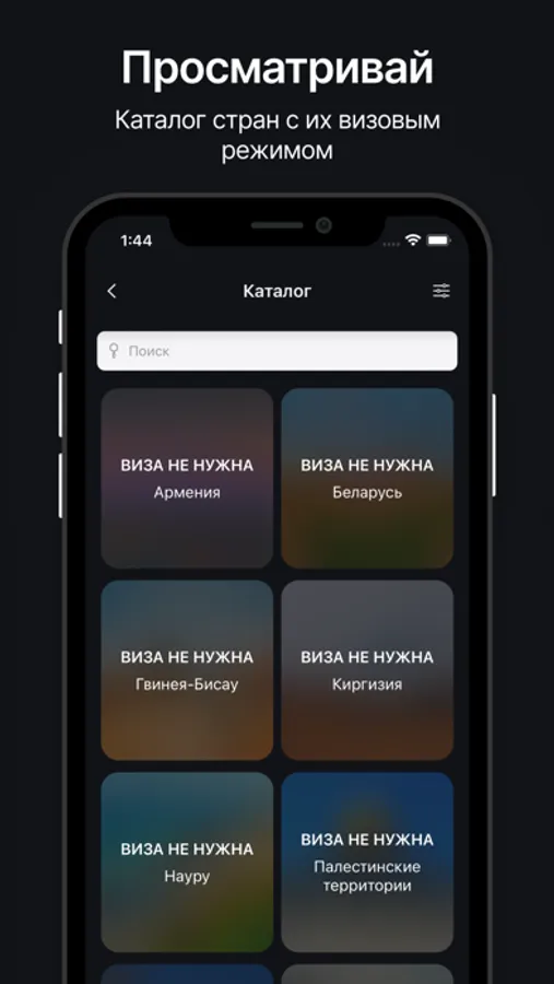- Просматривайте страны с безвизом