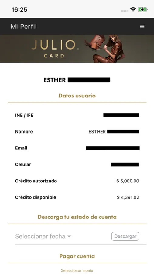 JULIO CARD permite a los clientes JULIO, manejar sus cuentas.
