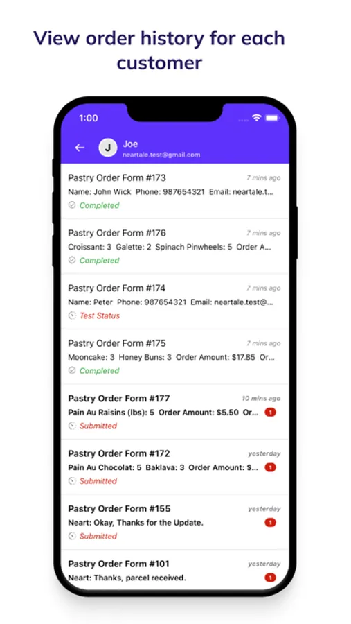 • Access order history for each customer