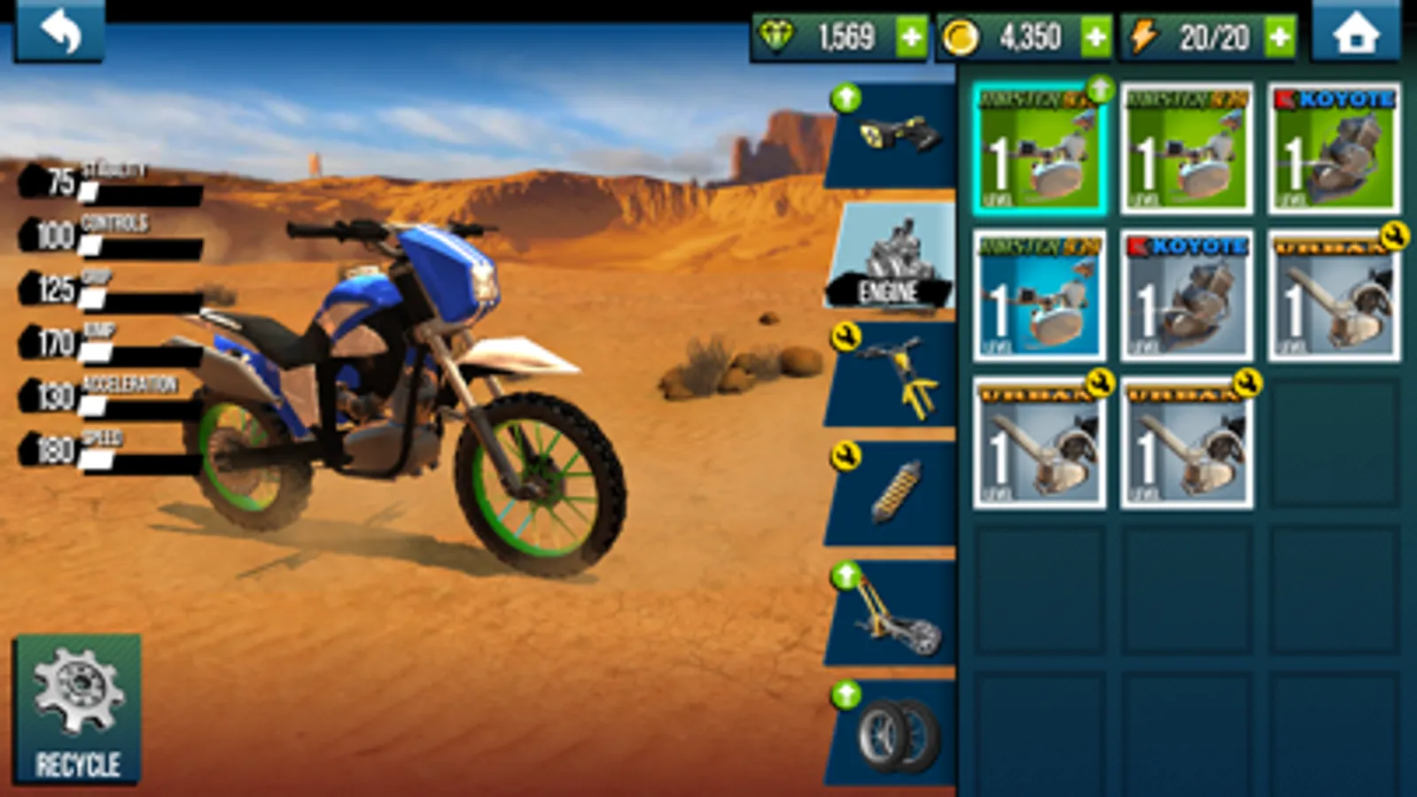 Express your unique style with endless customization options. Upgrade your bike with powerful new components to enhance its performance. Change your rider's gear to make a statement on the track.