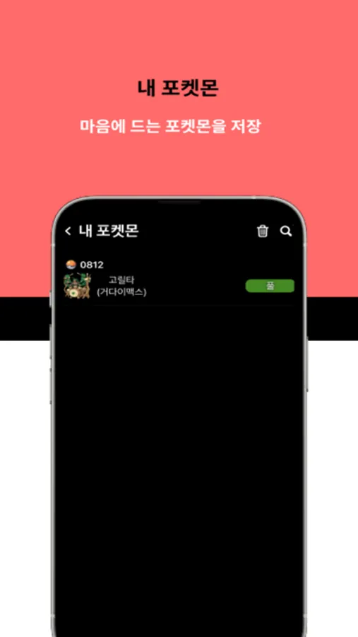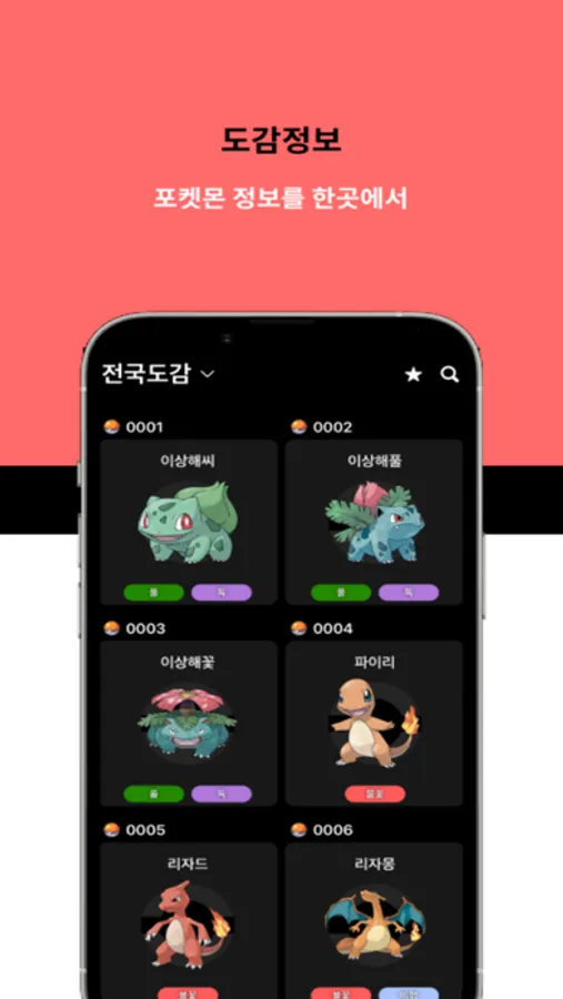 - 마음에 드는 포켓몬을 저장해보세요. 나만의 찜목록에서 확인할 수 있습니다.