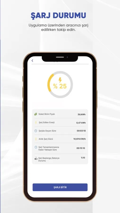 Uygulama üzerinden aracınızın şarj sürecini takip edebilirsiniz.