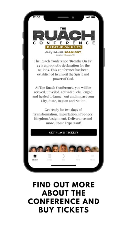 Informational app for The Ruach Conference taking place July 14 & 15 in Houston, TX