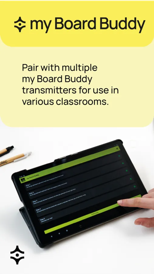 - Pairs with multiple ‘my Board Buddy’ transmitters for use in different (class)rooms