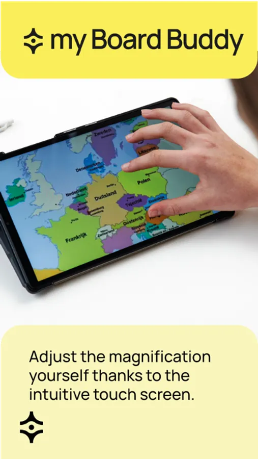 With the ‘my Board Buddy’ app, you bring the image of the digital board or presentation screen up close. This app is primarily intended for use on tablet. Thus, visually impaired students or staff can also follow a presentation visually.