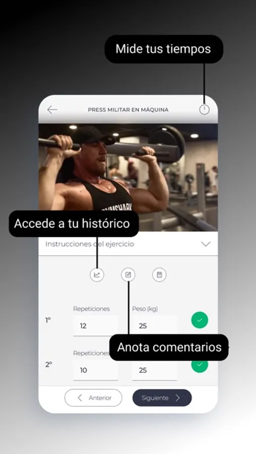 También tendrás a tu disposición las rutinas de entrenamientos planificadas en tu día a día ,según tu objetivo a conseguir, de una manera mas comoda y especificada.